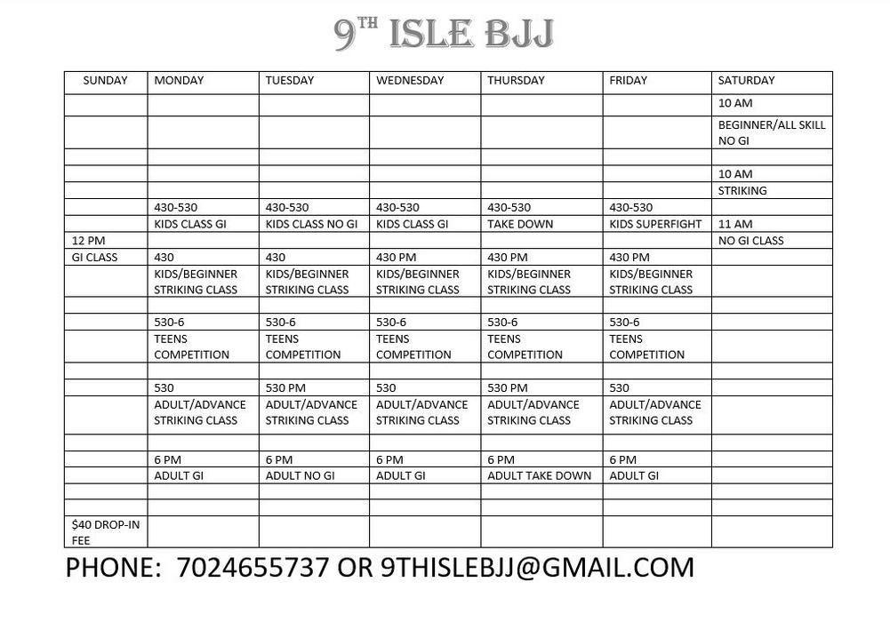 NO GI CLASSES: 9TH ISLE BJJ TSHIRT AND SHORTS. MOUTH PIECE, GROIN PROTECTION/PROTECTIVE CUP